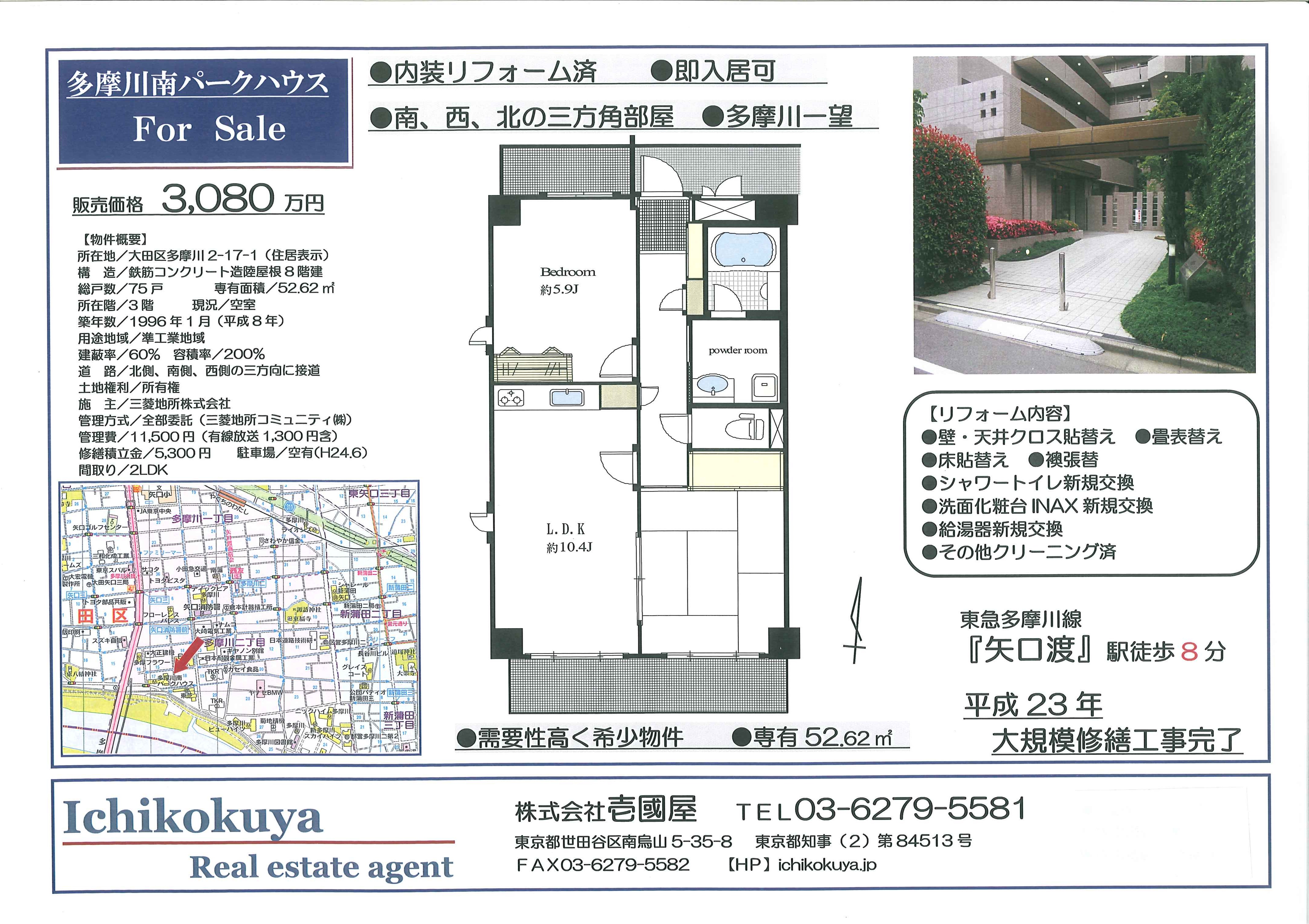 多摩川南パークハウス3,080万円 ご成約有難うございました。
